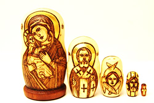 -. Title : Alkota Genuine Russian Collectible Nesting Doll "Vladimirskaya Mother of God", 4.5", Burned