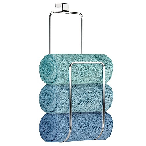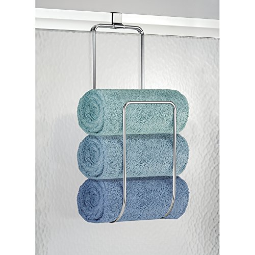 mDesign Over the Door Towel Holder for Bathroom Shower Door - Chrome
