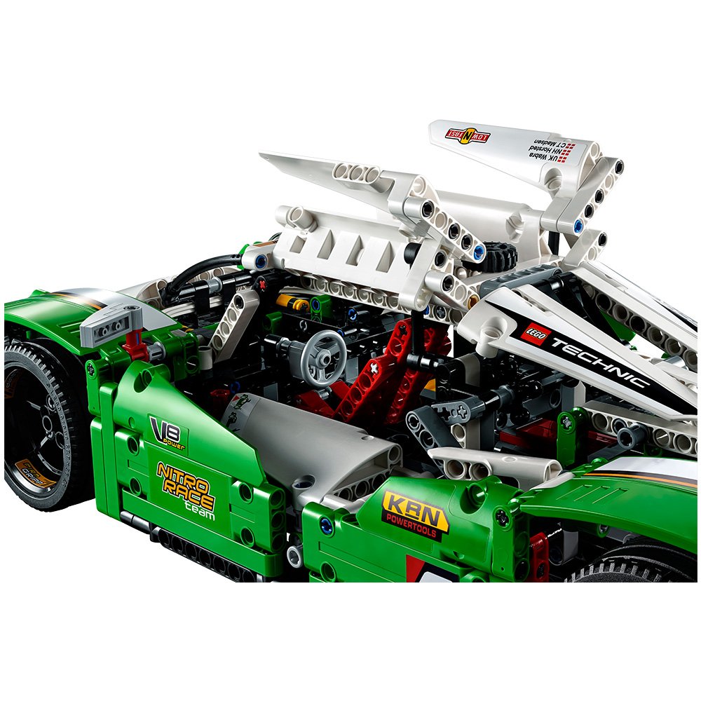 Once you turn on the racing grab, fully open the accelerator! 8293 If you upgrade with the power function motor set (sold separately), a bright LED headlight and a motor driven gull wing door and engine cover will be added to the set.