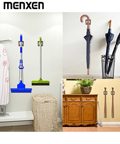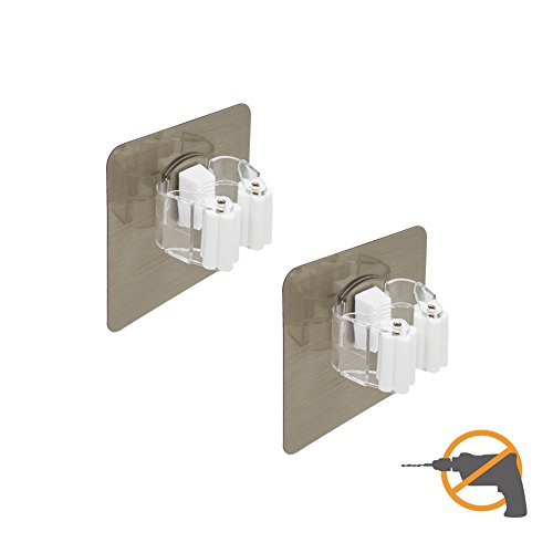 Broom Mop Holder, MENXEN Broom Gripper Holds Self Adhesive Reusable No Drilling Super Anti-Slip, Wall Mounted Storage Rack Storage & Organization for Your Home, Kitchen and Wardrobe (2 Pack)