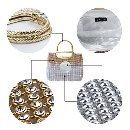 【PURLY HANDMADE】: beaded with fully crystals embelishment, softer satin lining, gold-plated metal frame with elegant clasp closure which can be opened and closed smoothly