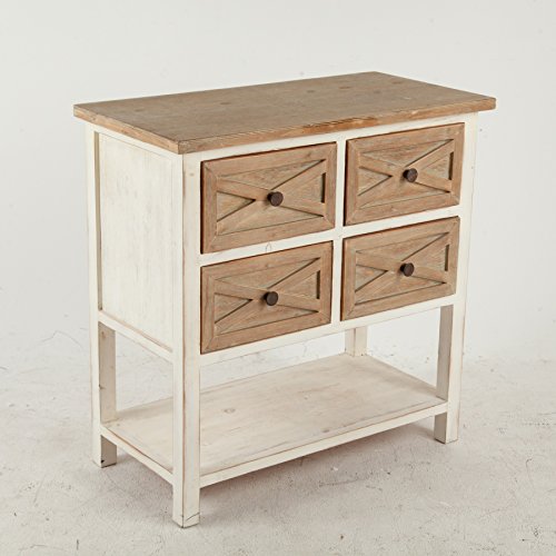 -. Feature : Four drawers with natural finish and open bottom shelf for storage / Height is 31. 5in / Painted and distressed finish