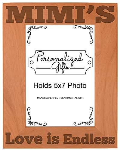 Mother's Day Gift Mimi's Love is Endless Natural Wood Engraved 5x7 Portrait Picture Frame Wood