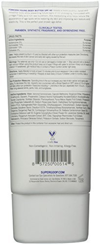 Forever Young Body Butter SPF 40 reveals a more youthful, toned and smoother body while preventing future signs of UV photo aging. Formulated with Omega-7 fatty acid rich sea buckthorn, this moisturizing whip helps reduce the appearance of age spots while restoring dry skin and improving skin texture and elasticity. This is the perfect post shower age-definer.Feature