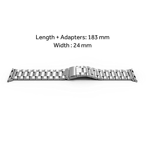 【Easy to wear】 The strap design with double folding clasp, can be firmly dressed, easy to take off. Band comes with refined steel connector on both ends, which locks onto apple watch band interface precisely and securely.