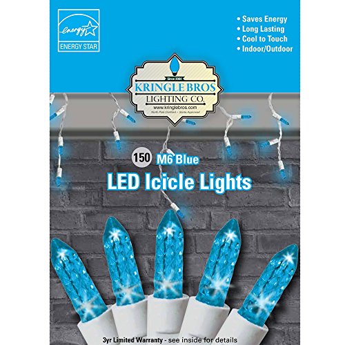 Kringle Bros BLUE - M6 Diamond Cut LED Icicle Christmas Lights - 150 Lights - 9.5 ft long
