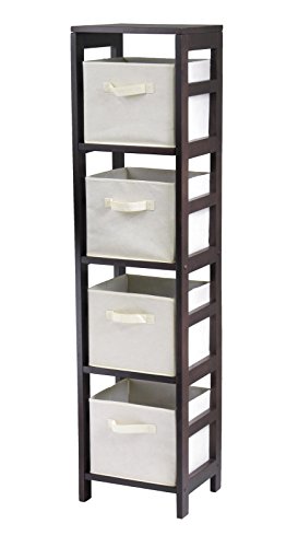 -. Title : Capri 4-Section N Storage Shelf with 4 Foldable Beige Fabric Baskets