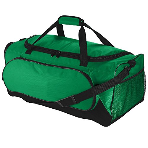 -. Binding : Misc. -. Brand : Augusta Sportswear -. Department : unisex-adult -. Feature : Shiny hexagon patterned polyester with PVC coating and 600-denier polyester with PVC coating * Zippered main compartment has large U-shaped opening with two zipper pulls * Zippered front pocket removes / Inside zippered pocket * Side mesh pocket * Shoe pocket * Web handles with self-fabric handle wrapper * Adjustable and detachable shoulder strap * Writable inside handle wrapper * / 28" W x 12" H x 13" D -. Label : Augusta Sportswear -. Manufacturer : Augusta Sportswear -. Model : 1745 -. PackageQuantity : 1 -. ProductGroup : Sports -. ProductTypeName : SPORTING_GOODS -. Publisher : Augusta Sportswear -. Studio : Augusta Sportswear -. Title : Augusta Sportswear Flare Large Duffel