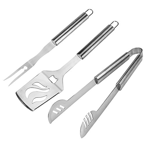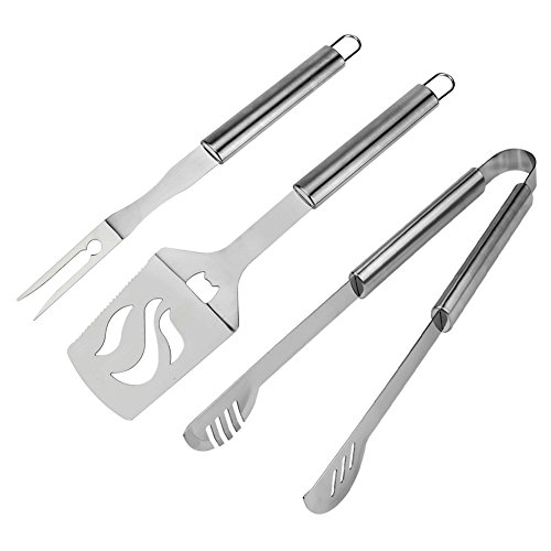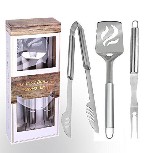 Qiucdzi Grill Set, 3 Piece BBQ Tools, Professional Grade Barbecue Accessories Utensils Kit Includes Spatula Tongs & Fork by Stainless Tools Set Gift Box Package