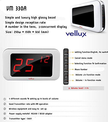 - Title : Vellux Restaurant Wireless Paging System Waiter call Customer with 10 Bells