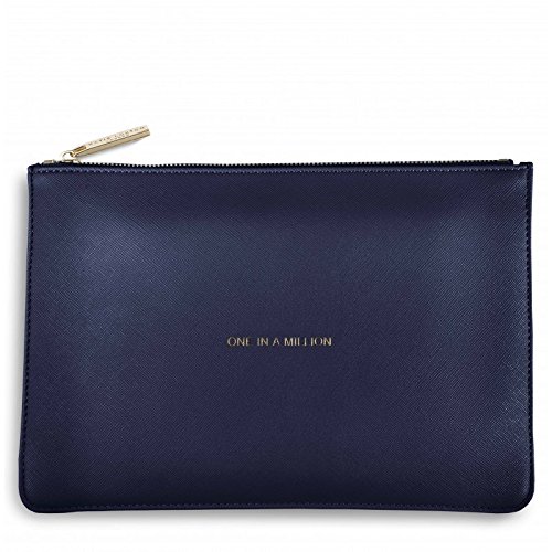 The Perfect Pouch makes a statement when used as a clutch or beauty bag or just holding all your girly goodies. It's so versatile, it is perfect for organising make-up, jewellery and even for taking on a night out. However you choose to use yours, with it's stylish, elegant design it is bound to be admired. This chic Navy Blue pouch features the words 'One In A Million' pressed and finished in gold, onto the Saffiano textured exterior. Finished using Saffiano texture with gold zipper and zip pull featuring the Katie Loxton logo. Size: 16 x 24 (cm)Feature