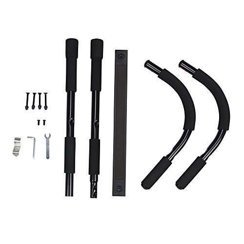 Studio : HolaHatha Publisher : HolaHatha Binding : Misc. Product Description √HEAVY-DUTY CONTRUCION STEEL This workout bar allows you to tone the whole body muscle with pull-ups, push-ups, chin-ups, dips and crunches. √ NO DAMAGE TO YOUR DOOR it uses leverage to hold against the doorway and needs no screws any more. According to the physics theory, the heavier you are, the stronger the friction is! So it's safe to use this products on your doorway. √THOROUGH INSTALL MANUAL There is an instruction paper that guide you to install it step by step. It allows you to install and use it in seconds. √NO MISSING OF ANY PARTS We check every package we sent out, so it will never happened that you wait for 3 days to receive the order and found a screw missing. Then you wait for another 3 days to receive the missing part and you found it's a new style which doesn't met the bar you had. And you.... Try Holahatha quality and service, and you will never worry about it! √PROTECT BOTH YOU and the DOOR FRAME holding up to 350 lbs. So if you are hunk, try it! An extra thick pad will also protect your door frame to avoid any scratch! 0