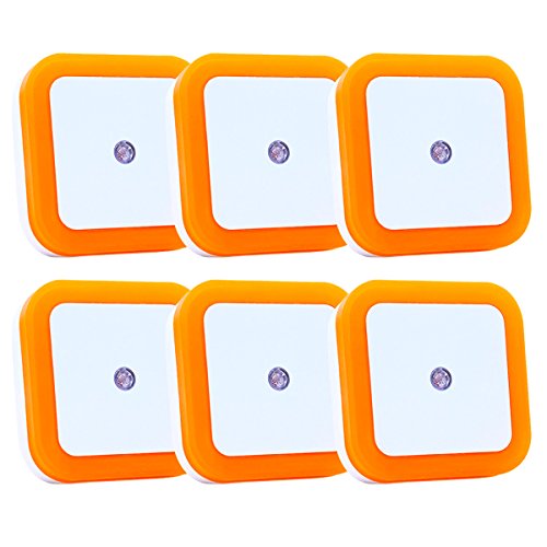 LED Night Light For Kids, Plug in Night Light Lamp with Smart Sensor Automatic On Off for Nursery,Bathroom,Hallway, Stairway, 0.5W 6-Pack (Orange)