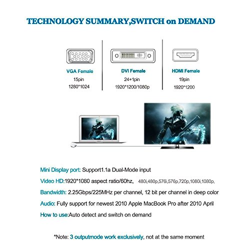 Mini Displayport, with this line, you can replace the mini DP to DP; mini DP to DVI; mini DP to HDMI three lines, economical and convenient. When Work, only one single interface display, not 3 Triple Interface both display
