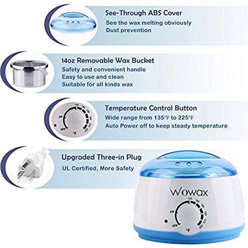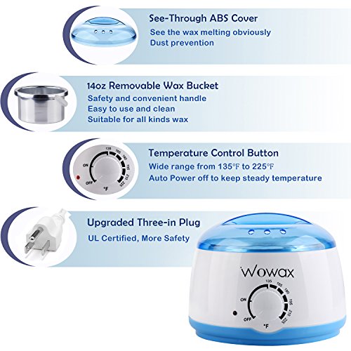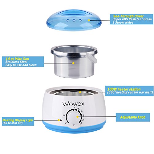 WOWAX Professional Wax Heater, 135℉ to 225℉, Hair Removal Wax Warmer with 14 oz Melting Pot, Blue
