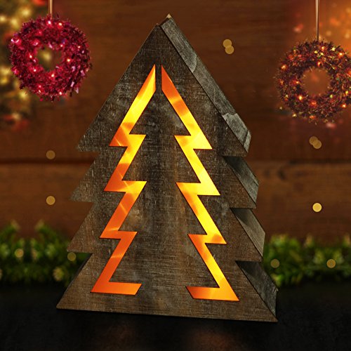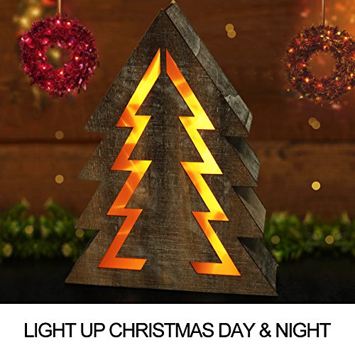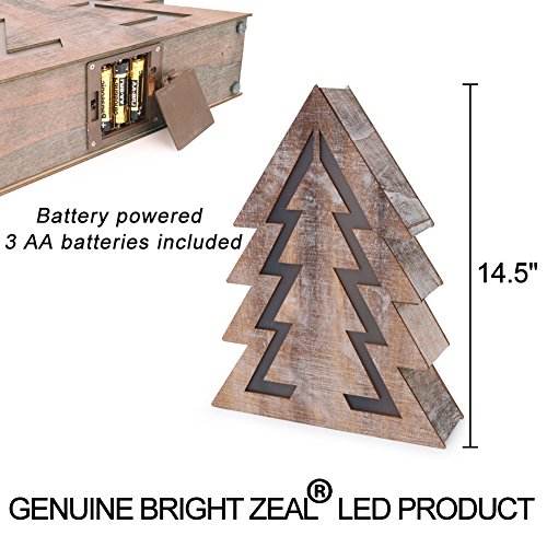 BRIGHT ZEAL Wooden Christmas Tree with LED Lights (14.5" Tall Christmas Tree Shape, 8hr Timer, Batteries Included) - Wooden Xmas Tree Decorations - Christmas Tree Shaped Lights Decorative Signs 24011