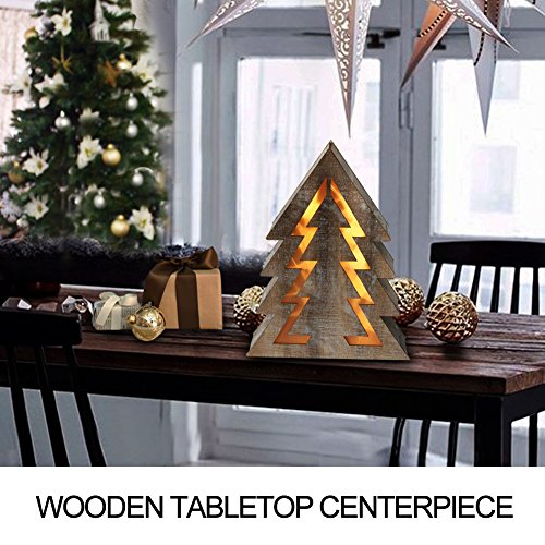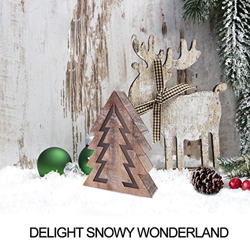 BRIGHTEN UP YOUR HOME WITH THIS DIMENSIONAL WOODEN XMAS TREE LIGHT - Crafted from burlywood wood, 10 built-in LED lights shine through the PVC reflector making the 14.5" tall Christmas tree attractive - Wooden surface is covered with faux snow, adding a taste of "White Holiday" to your home - At night, LED bulbs emit starry warm white glow as if seen from the fireplace, creating a cozy festival ambiance - This lovely wooden Xmas tree light brings beauty and warmth to any place during Christmas.