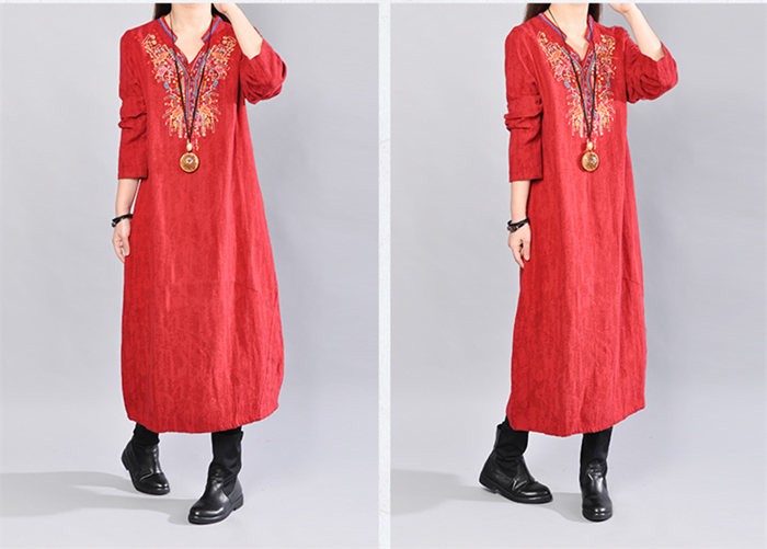 【商品特徴】・ゆったり、ラフなシルエット。カジュアル&リラックス感満点。・あると便利な着回しチュニック。合わせるスタイルを選ばないからたくさん着回せる。・ワイドデザインでストレスフリーな着心地。サイズに切替が入っているからシルエットがすっきりと見える。着膨れ感が少ないのが嬉しいポイントです。・着こなしに女性らしさを与えてくれる深みのあるレッド。カジュアルにも上品にも着こなせます。【キーワード】検索綿麻混ワンピース ワンピース ロング レディース マキシワンピース ロング丈 ワンピース コットンリネン 体型カバー 長袖 花柄ワンピース チュニック ロングワンピース Vネック 刺繍 森ガール ナチュラル服 秋 冬 秋ワンピース ゆったり 大きいサイズ 着痩せ 30代 40代 50代 60代 お洒落 おしゃれ オシャレ ゆるっと 旅行 ママワンピース 母親 ママ ワンピース 黒 赤 緑 M L 2L 3L【ご注意】:初めのうち色落ちする事がありますので他のものとは別にお洗いください。・塩素系漂白剤は使用しないでください。