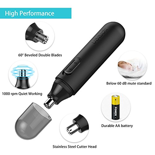 Nose Hair Trimmer- Features a 60° beveled double blade with protective cover, inner 360° rotating cutter head. Sharp yet safe, no pulling and scratching