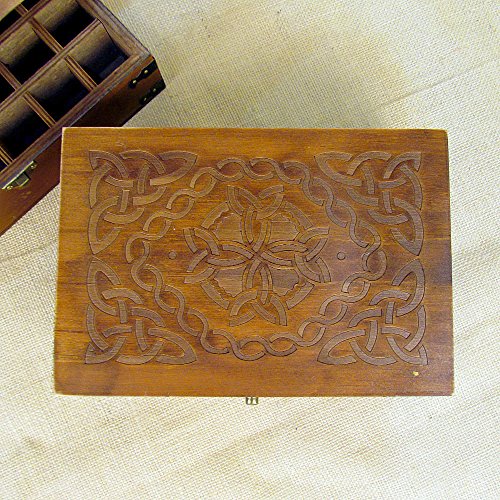 Celtic Design Wood Storage Box for 15ml Essential Oil Aromatherapy Bottles by Rivertree Life