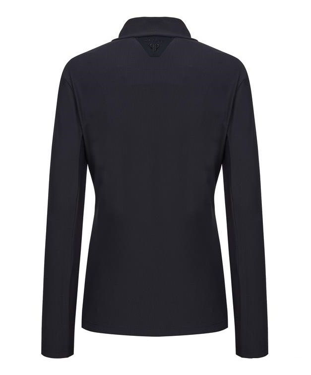 하이넥과 소맷단에 트임 장식이 돋보이며 슬림한 핏감으로 여성스러운