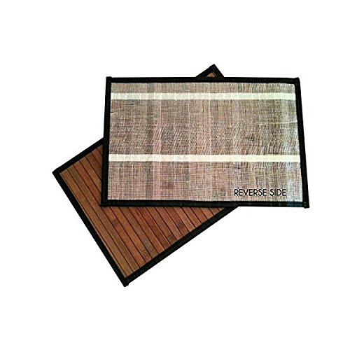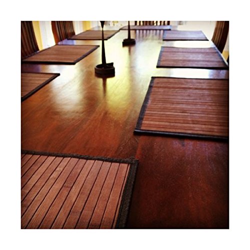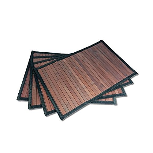 Stylish Wide Slat Bamboo Placemat - Dark Brown - Black Border, 4pc Set