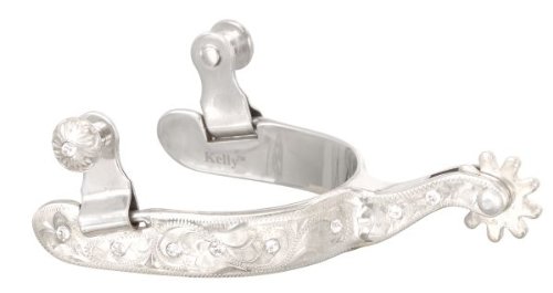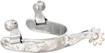 Product DescriptionPlated steel silver spurs with inset clear crystals. Engraved 1/2 band. 1 1/2 shank with 9 pt rowel.0