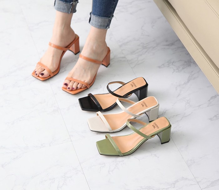 商品名:サンダル レディース ミュール 太ヒール チャンキーヒール 2018 夏 ファッション 靴 婦人靴