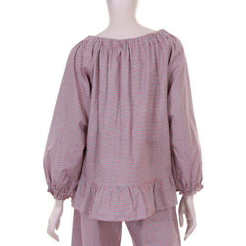 소맷단에도 고무밴딩이 들어가있어 흘러내림이 적으며 상의 밑단과 바짓단에 프릴처리하여