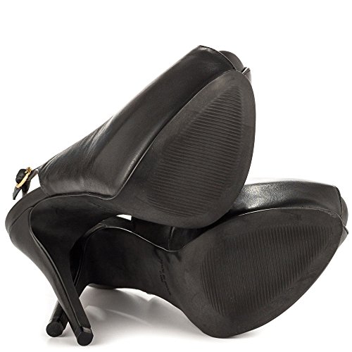 Brand: Steve Madden. design Name: Divva. Department: Women. Materials: Patent leather upper, Leather lining, Man-made sole. Platform pump in sling back design with peep toe. Adjustable slingback buckle strap. Platform measures appproximately 1.5". Heel measures approximately 5". Made in Brazil. 0 |