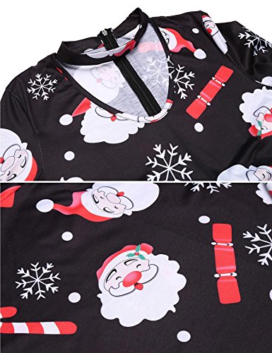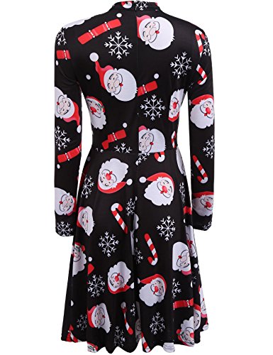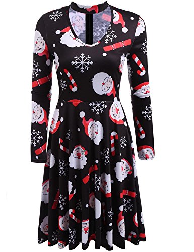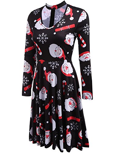 Elesol Women Long Sleeve Christmas Santa Claus Print Zipper Flared A Line Dress Red Black M
