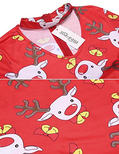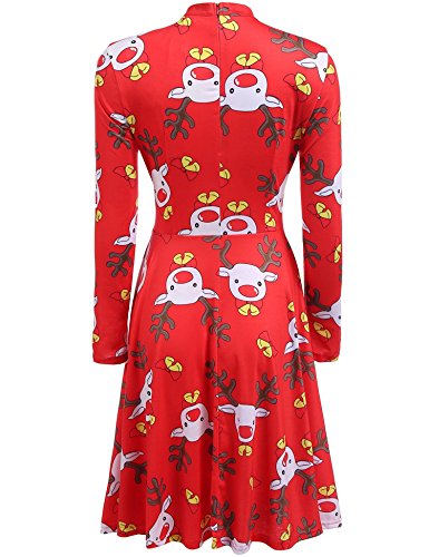 Elesol Women Long Sleeve Christmas Print Xmas Casual Dress Red XL