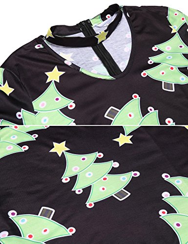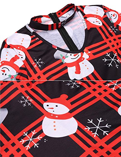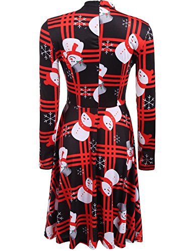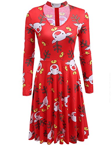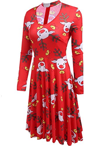 Elesol Women Long Sleeve Choker V Neck Christmas Print Xmas Casual Dress Red Black S