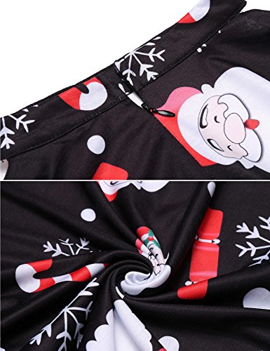 Elesol Women Santa Christmas Pattern A Line Flared Skater Dress Black L