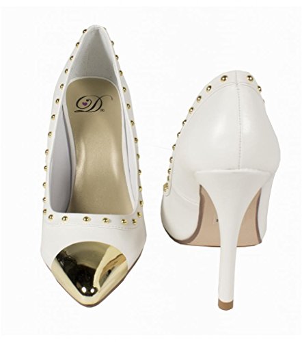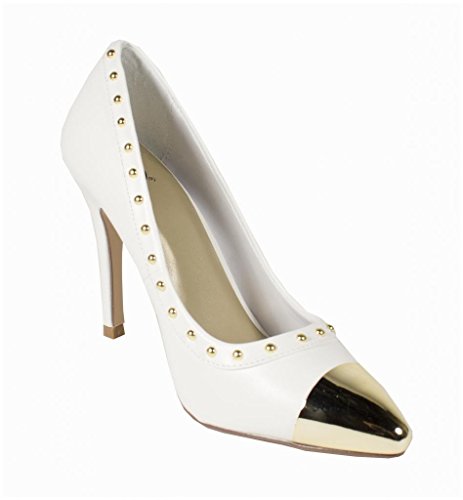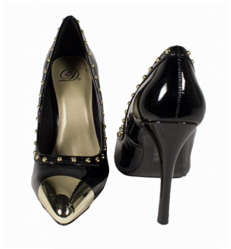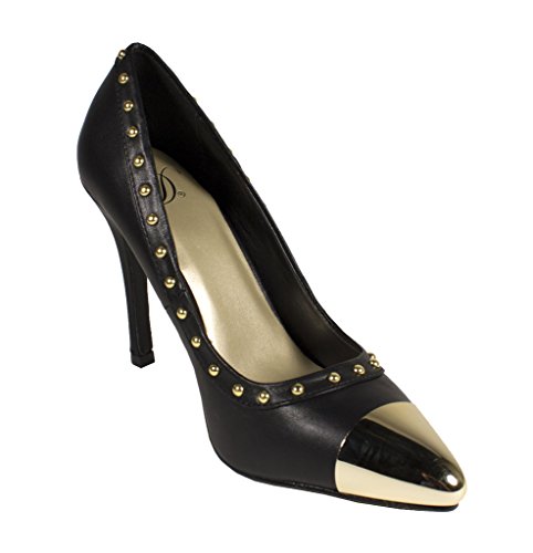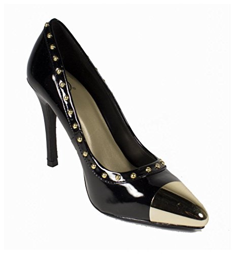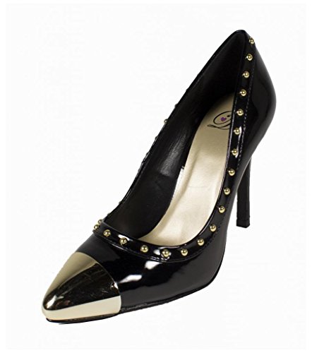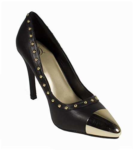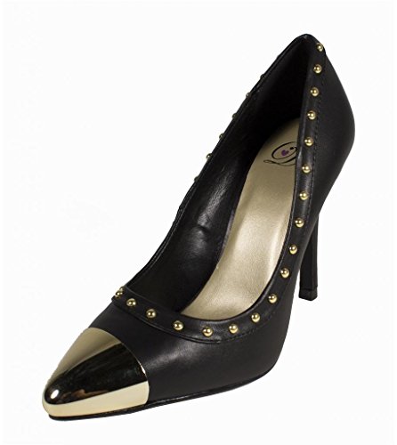 Product DescriptionLustacious Women's Studded Trim Metal Cap Slip On Dress High Heel Pumps0