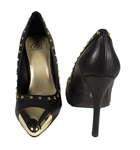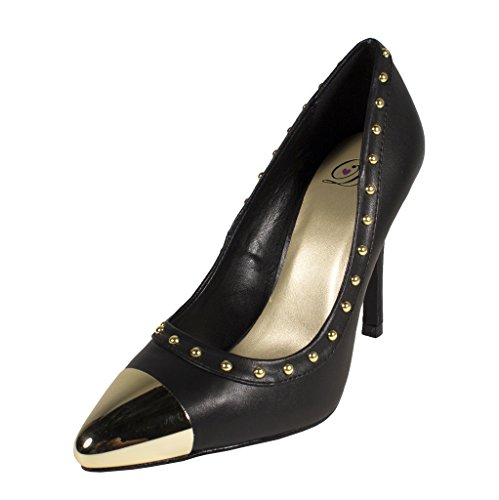 Lustacious Women's Studded Trim Metal Cap Slip On Dress High Heel Pumps