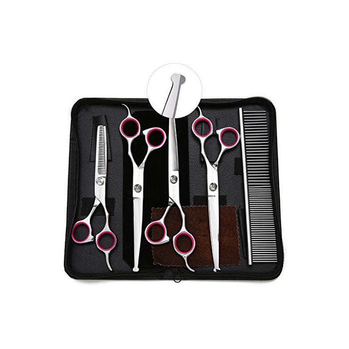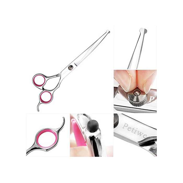 Petiwe 2017 최신판 애완동물용 트리밍 가위 시자 trimmer― 커브 세닌구 컷 시자 개와 고양이 자택모 자른 전신 미용 둥근 첨단 안전성 높은 전용 케이스 첨부 와 7세트 프로의 손