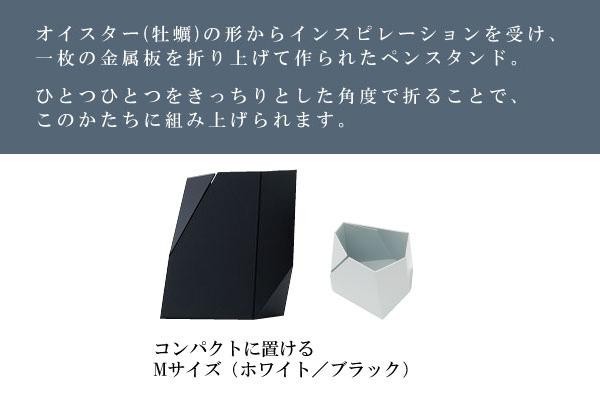 | オイスター(かき)にインスパイアされたエッジィなフォルム。一枚の金属板を折り上げて作られたペンスタンドです。直線的なラインが印象的!金属ならではのシャープなデザインです。 |