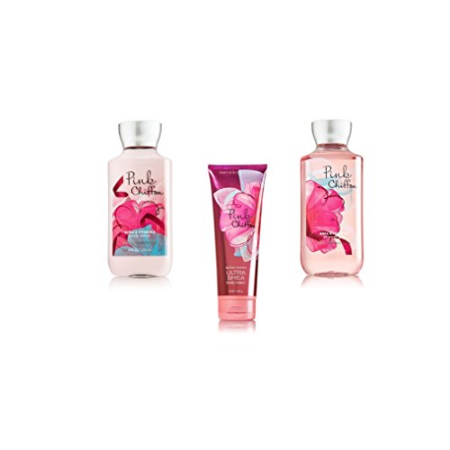 - Includes one each of Bath Body Works PINK CHIFFON Body Lotion 8oz, Shower Gel 10 oz & Body Cream 8 oz