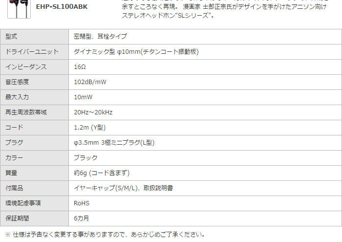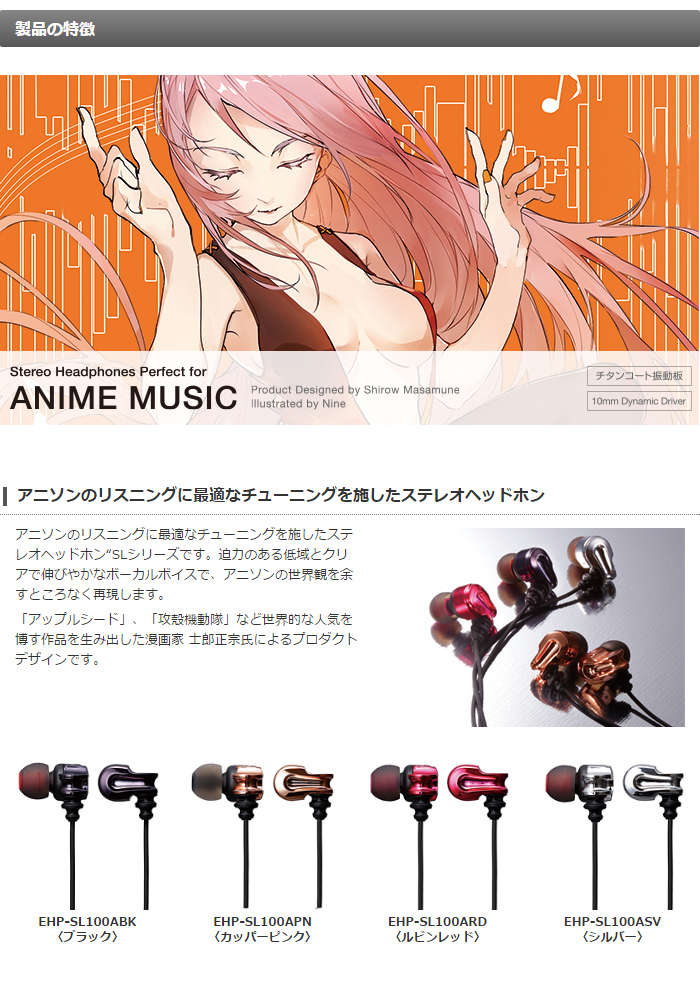 ●アニソンのリスニングに最適なチューニングを施したステレオヘッドホン“SLシリーズ”です。