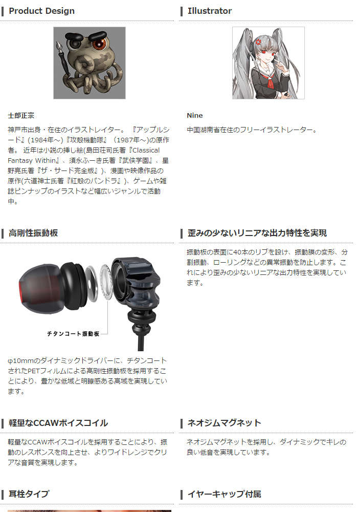 ●「アップルシード」、「攻殻機動隊」など世界的な人気を博す作品を生み出した漫画家 士郎正宗氏によるプロダクトデザインです。