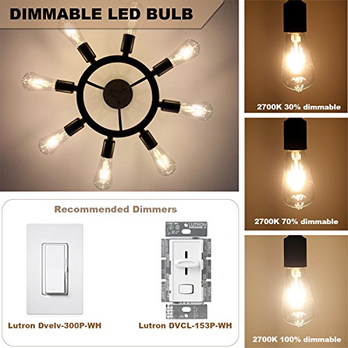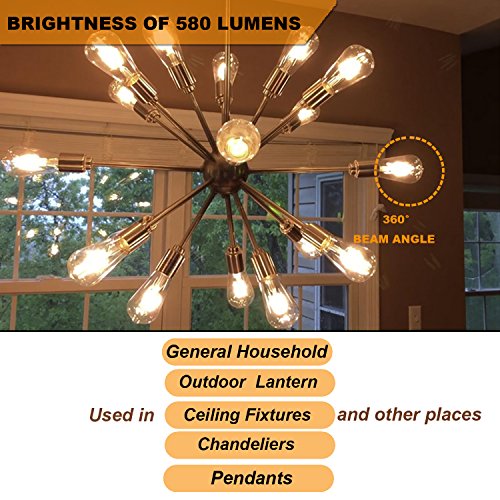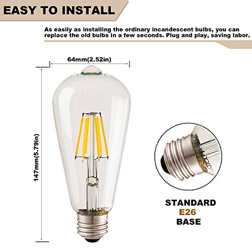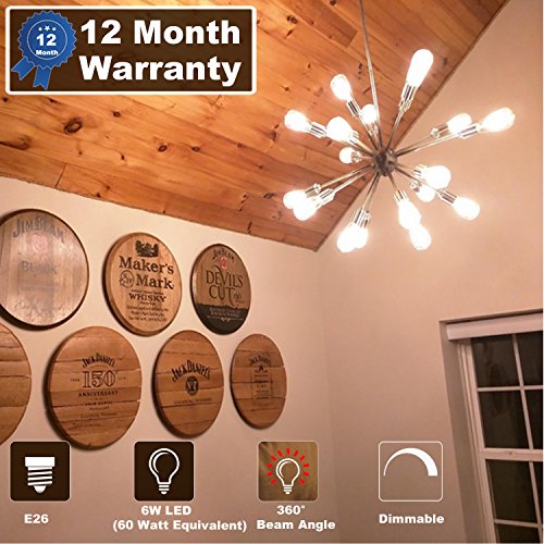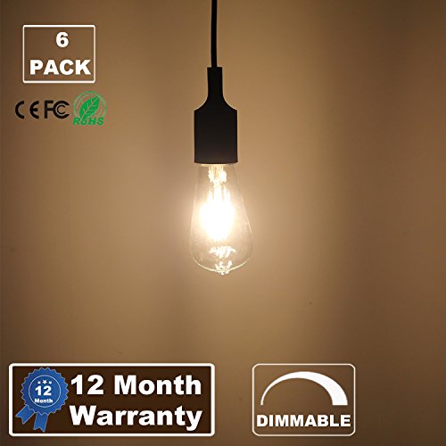 Specifications: ?Bulb Category: Edison Vintage led light ?Light Source: LED ?Wattage: 6W ?Lampbase: E26 ?Color Temp (K): 2700 Kelvin ?Body Color:Clear glass ?CRI: > 80 ?Light Effect: Instant On ?Voltage: AC 110-130V ?Dimmable : yes ?Warranty: 1 year ?Package:6 pack 0