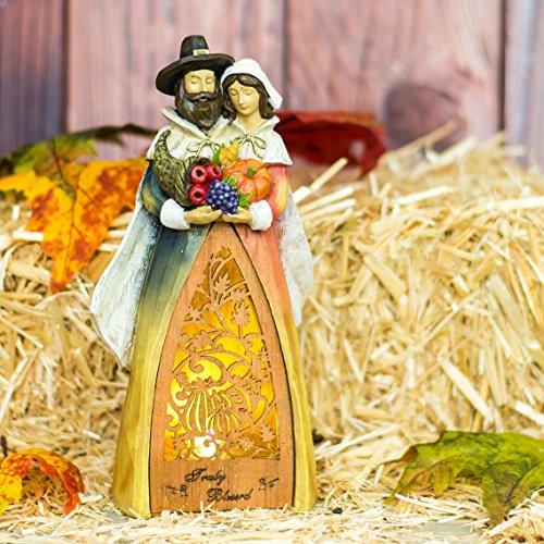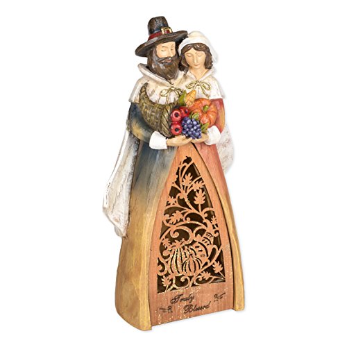 Truly Blessed Pilgrim Harvest Light Up LED 9.5 Inch Laser Cut Wood Resin Tabletop Figurine