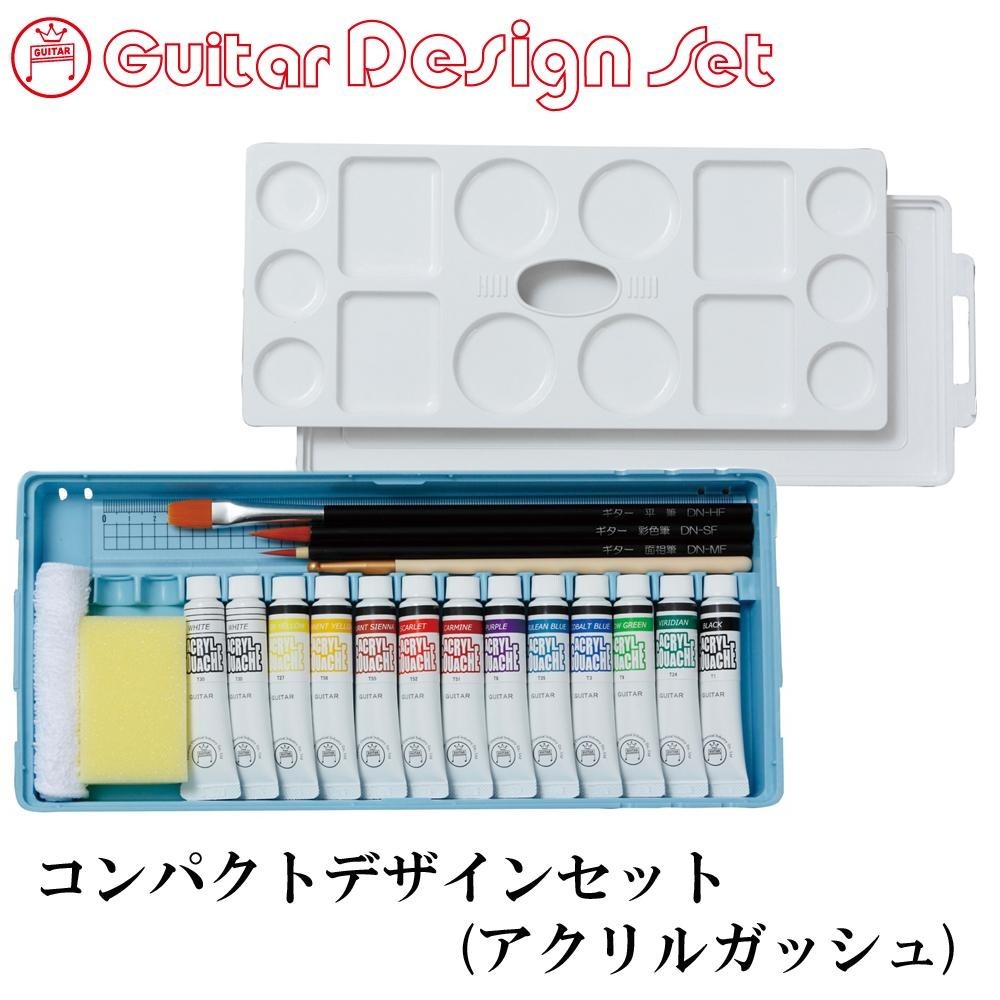 | セット内容 | ギターアクリルガッシュセット(しろ2本・レモンいろ・きいろ・ちゃいろ・しゅいろ・あか・むらさき・あお・ぐんじょう・きみどり・ビリジアン・くろ/各11ml) デザイン筆3本組(平筆・彩色筆・面相筆) 方眼溝付定規(25cm) プラ軸アルミ棒 スポンジ 筆拭き コンパクトケース |