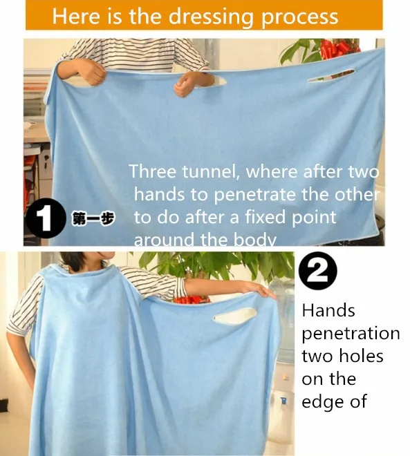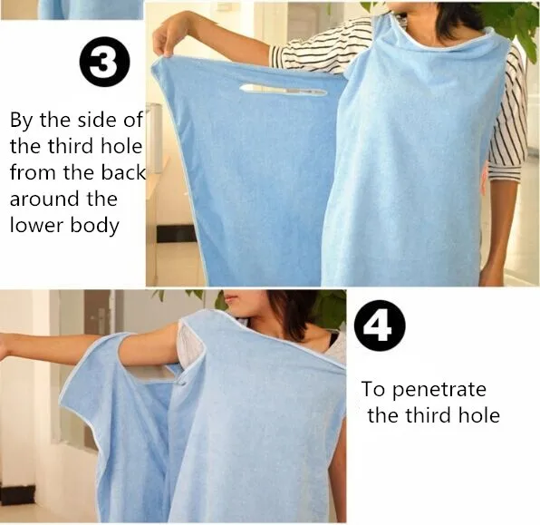 Summary: fine fiber material, soft and comfortable fabrics, lightweight and easy to carry. Bath towels can be quickly transformed into a bathrobe, can wipe the body after a bath, it is able to "wear" a new large bath towel, wear it will not fall, the body can freely activity. Unisex size fits all.