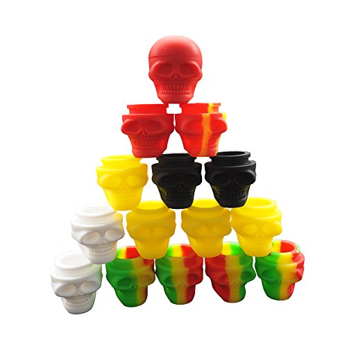 YHSWE 6pcs Small Skull 3ml Non-stick Silicone Dab Container Wax Concentrate Jar Multi Color