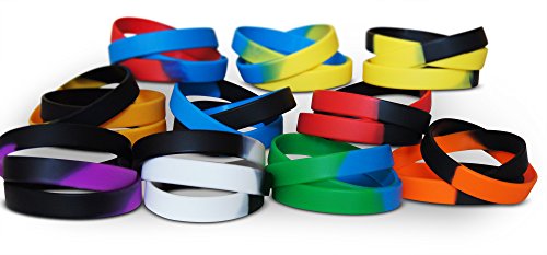 -. Feature : 30 PIECE WRISTBANDS make ideal giveaways, carnival P.R.Izes or party favors in gift goody bags as stuffers for kids. Each measures 8" around the wrist, made of strong stretchy safe silicone. / 10 DARK DUAL-COLORS This pack contains three bands of every different color mix, for a total of 30 blank bracelets. Colors includes black & red, purple, white, orange, gold, yellow, blue, as well as blue & yellow, red, & green. This party favor pack is the P.R.Ime mini size for goodie bag fillers for any party. / CHILD FRIENDLY bands are recommended for ages 3 & up. es, teachers, & parents alike will enjoy their boys or girls reaction to these give away wristband novelty gifts. The bracelets add FREE fun everyday in school allowing them to be attached to backpacks & are great small P.R.Izes for any church fair carnival game. / P.R.IME PARTY SUPPLIES these wristbands add flair to any party table setting as decorations or as a centerpiece. They are perfect for carnival themed birthday parties & for games at get togethers. A must have along with all the balloons, candy, plush toys, & whistles in goodybags. / 30-DAY MONEY-BACK GUARANTEE lets you try Novel Merk Party Favor Wristbands risk-free. If our products do not meet your approval, return them for 100% refund of your purchase P.R.Ice, no questions asked.