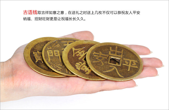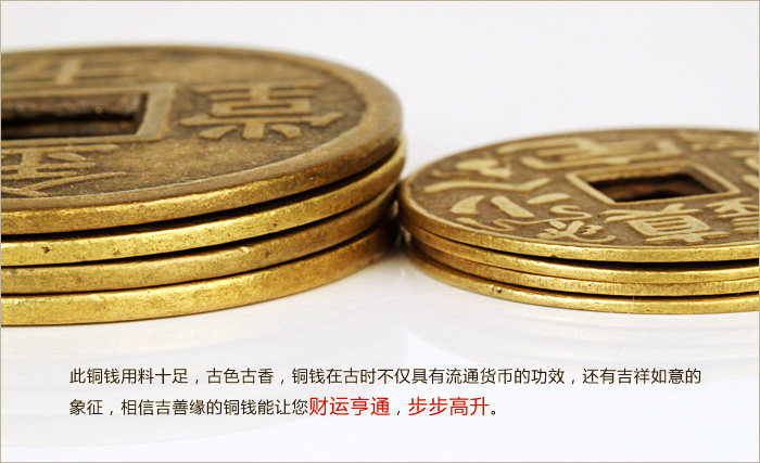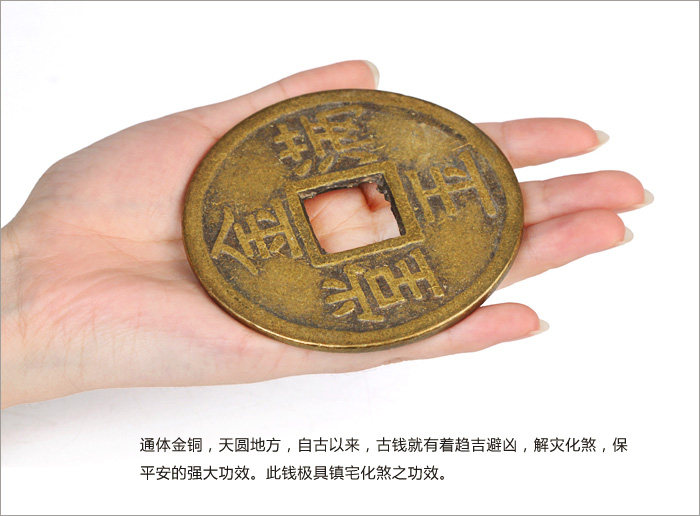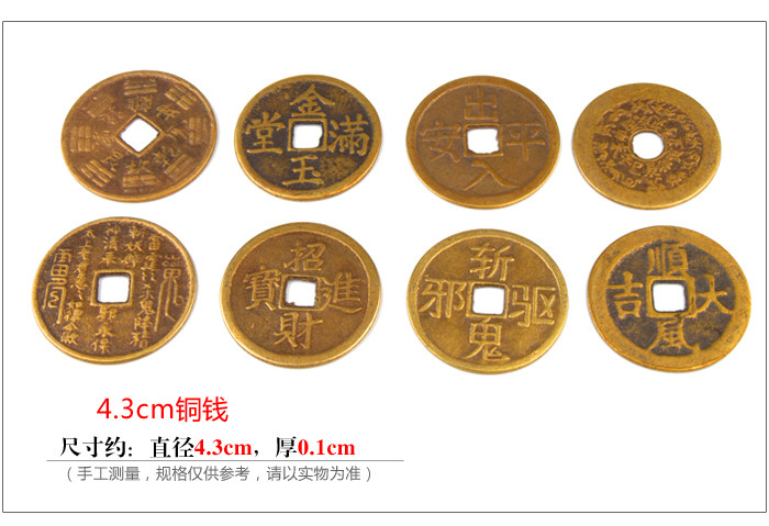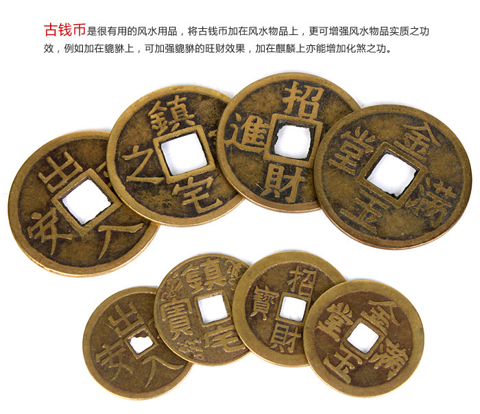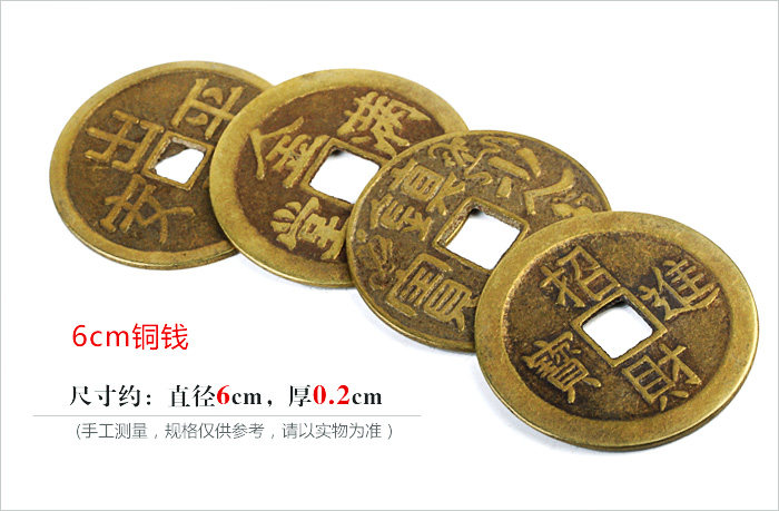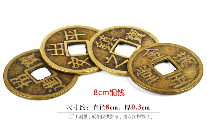 Product features: Ancient coins?is?very useful?in Feng Shui?activities,?the?ancient coins?in the?Feng Shui items,?more?can enhance the?efficacy?of Feng Shui itemsessence,?such as?in?dance,?can strengthen the?brave?Wangcai?effect,add?in?kylin?also?can increase?the evil spirit. Product?introduction: Name:?Coins Material:?Copper Size: 6cm?coins of about?0.2cm thick,?8cm?copper?thickness of about 0.3cm 4.3cm?copper?thickness of about 0.1cm Weight:?About 32g?8cm?6cm?coins,?coins of about?108G 4.3cm?coins of about?15g Packing:?packing bag for?the mascot |