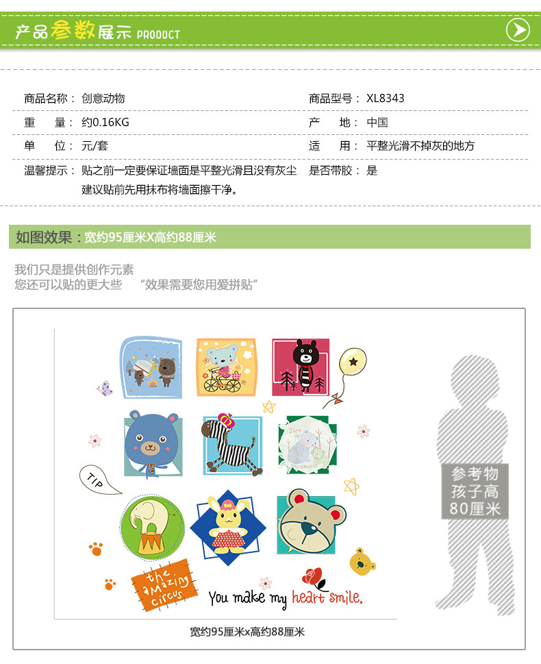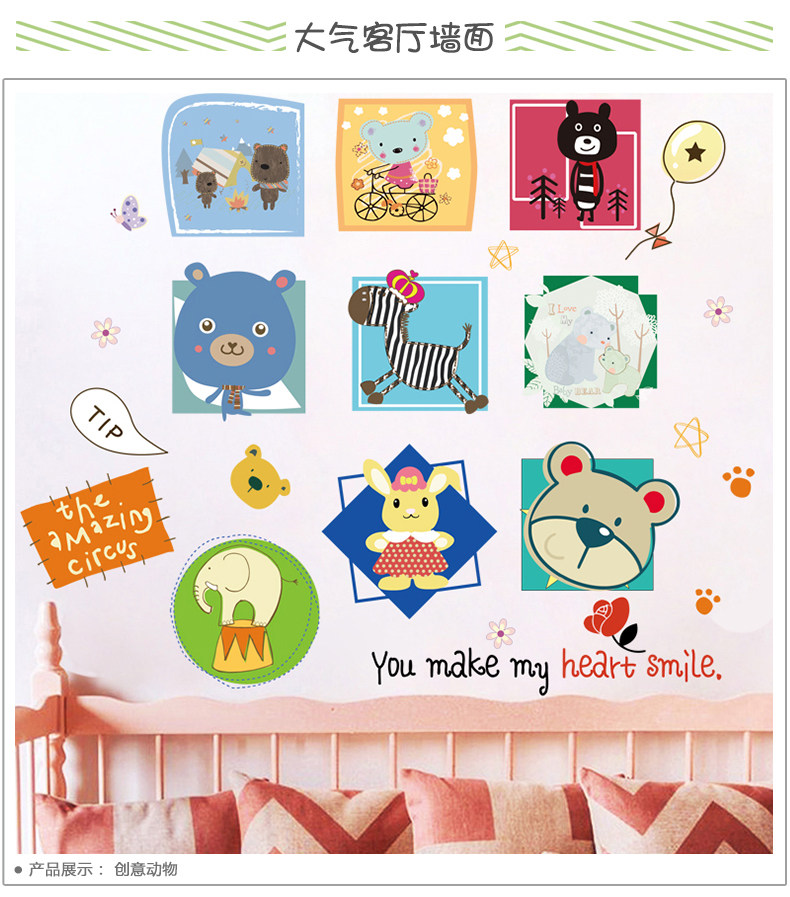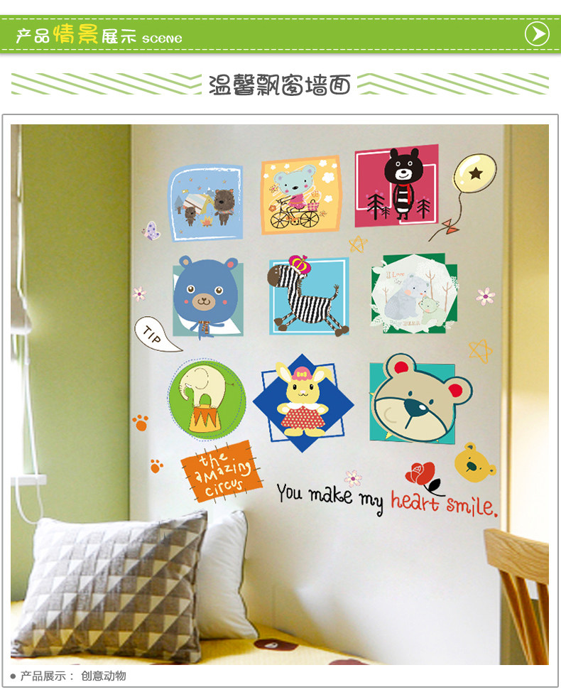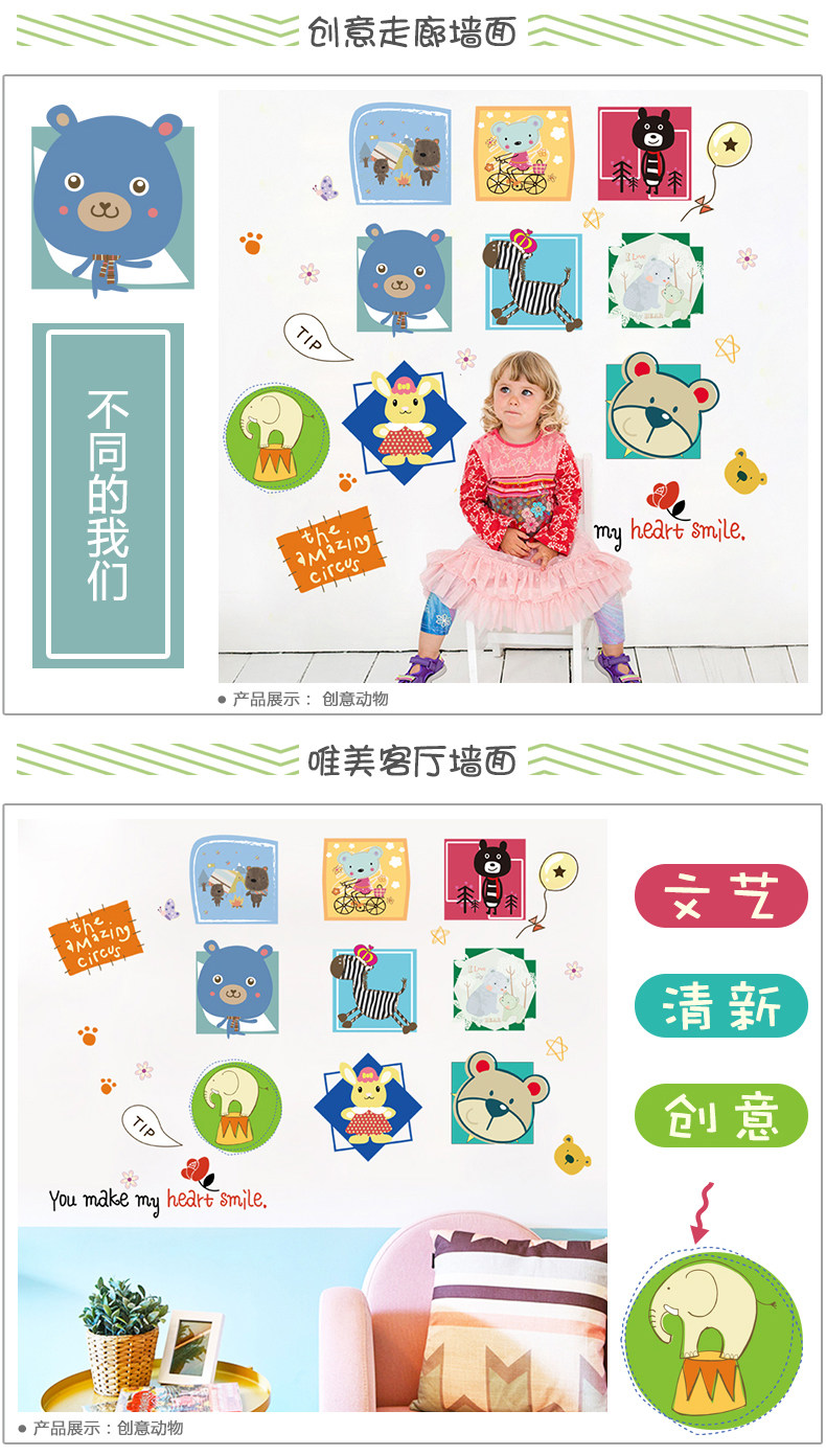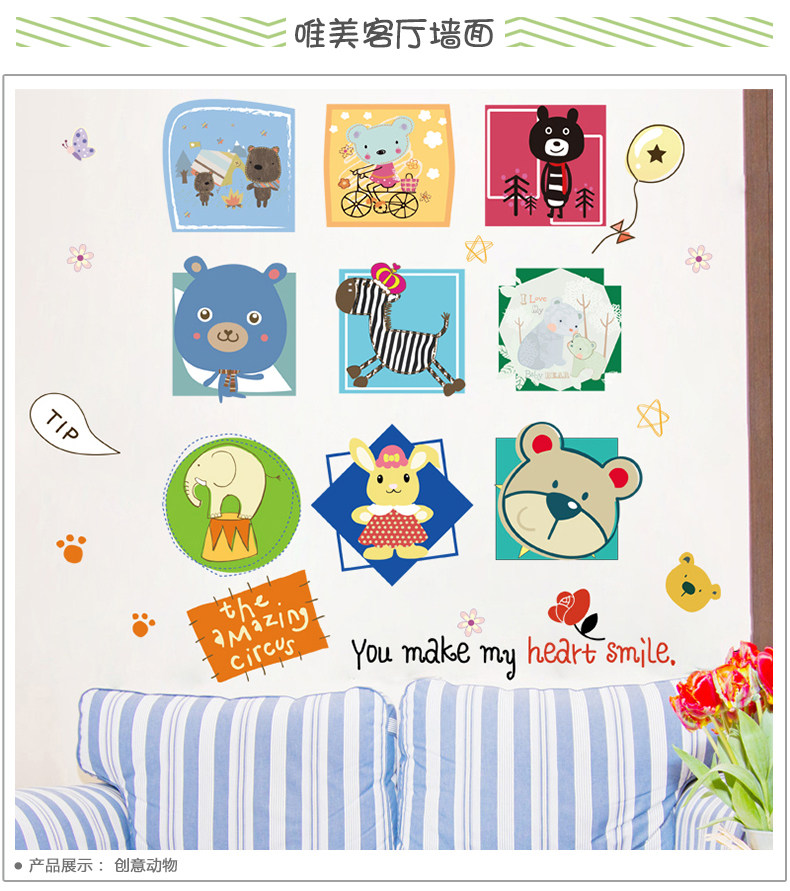 趣味动物头像照片墙贴纸卡通可爱儿童房间装饰品相框自粘墙纸贴画