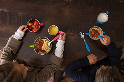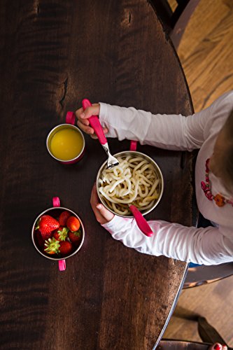 -. Feature : Double lined bowls to keep foods warmer/colder for longer & protects little hands / Made with highest quality food grade type 304 stainless steel. Kid-friendly handles to aid in self-feeding. / BPA-, Phthalate-, PVC and Lead- Free / Dimensions: 6.5" W x 5" D" x 3.5" H / Caution: NOT for use in microwave or ovens.
